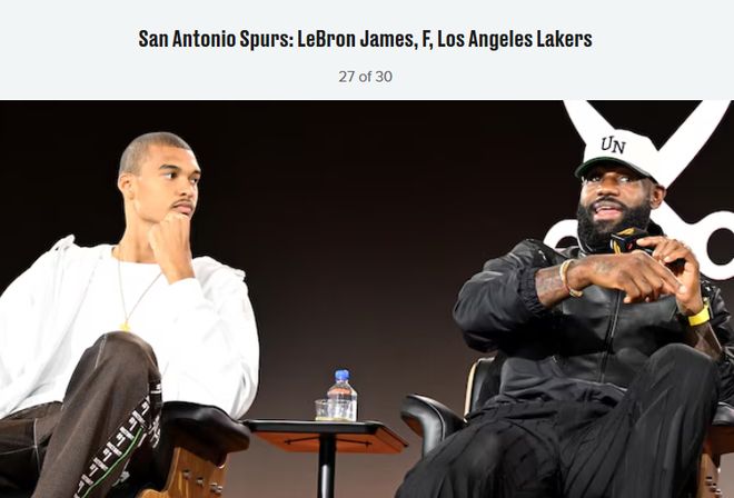 “詹姆斯和文班亚马的组合有诸多优势,无论是在场上表现、训练习惯、力量训练还是对对手的研究方面。由文班亚马、詹姆斯、福克斯、迪伦-哈珀等人组成的核心阵容,今年有望在季后赛中走得很远。”